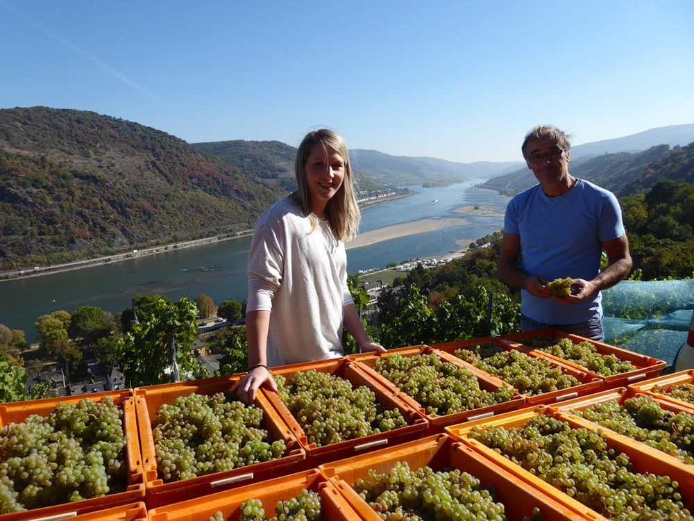 Die Kombination aus Handarbeit und Mechanisierung ist vielleicht genau das, was den Steillagenweinbau so reizvoll macht! Die Arbeit im Weinberg und in der Natur kann so entspannend sein, da möchte ich gar nicht nur Traktor fahren. Und ganz ehrlich, so einen atemberaubenden Blick auf den Rhein hat man nun mal nur aus dem Steilhang heraus.