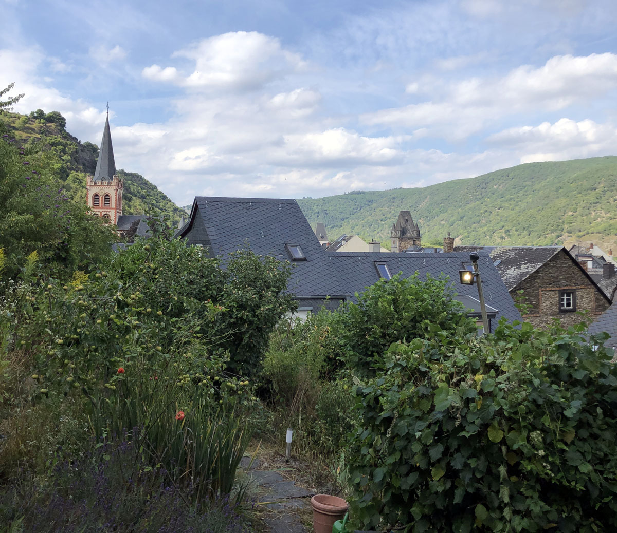 Behind Haus Sickingen and its neighbourhood in Bacharach Oberstraße, an unknown world opens up. Around 2 hectares of hillside with lots of greenery, few access points and the best views. People are rarely to be found in this idyll, and when they are, they often cause trouble. The town is currently discussing an article in the „Rhein-Zeitung“. The owner of Haus Sickinger, Jean-Marc Petit, is making serious accusations against the long-established Verschönerungsverein (VV). He says that he owns most of the land, does not care about it and lets it become overgrown with bushes. According to Petit, there are dangers for the whole town: in times of drought, a forest fire with unforeseeable consequences for the historic centre, and in times of heavy rain, landslides and mudslides. The supervisory authority ADD is also alarmed, the article continues. For a long time, they had promoted goat keeping on the site in order to keep the vegetation low. Now they are demanding money back because the animals could not graze long enough. The Verschönerungsverein does not get a word in edgewise and is surprised.