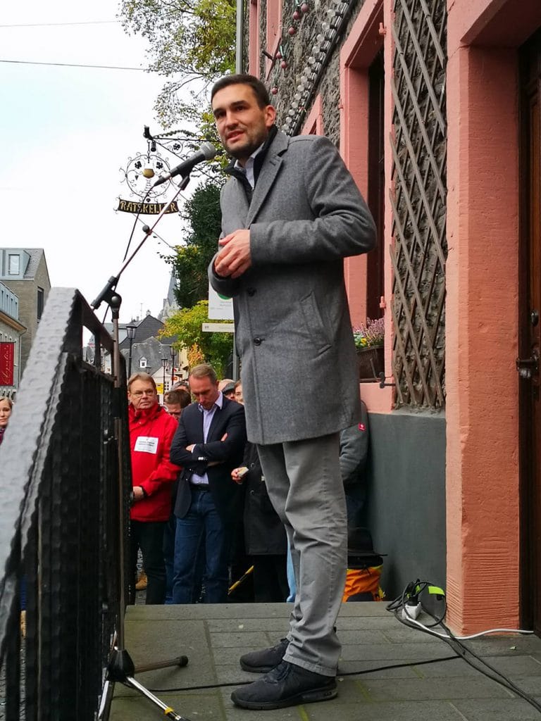 Die Bürgerinitiative zur Rettung der Loreley-Kliniken hat gestern bei knackigem November-Wetter wieder knapp 800 Demonstranten mobilisiert, darunter 4 Bürgermeister: Neben VG-Chef Thomas Bungert („Ich bin jetzt im Kampfmodus“) sprachen bei der Kundgebung Marius Stiehl (Oberwesel), Falko Hönisch (St. Goar) und Peter Unkel, der designierte Bürgermeister der künftigen Groß-Verbandsgemeinde „Hunsrück-Mittelrhein“. Die Kommunalchefs und Minderheitsgesellschafter sehen wieder eine realistische Chance für den Weiterbetrieb und ermunterten zu weiteren Aktionen. Laut Bungert hat der heftige Widerstand der Bevölkerung den kirchlichen Klinikbetreiber Marienhaus ebenso überrascht wie die Landesregierung (vermutlich auch die Bürgermeister selbst). Vor allem Oberwesels Stadtchef Marius Stiehl zeigte sich optimistisch: „Es geht weiter!“
